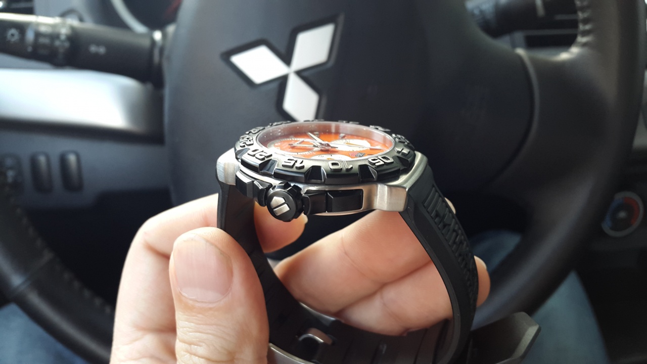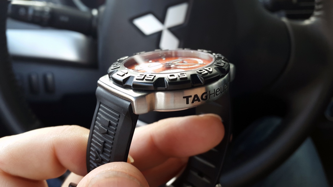 Сейчас уже редкая модель, 2009го модельного года, когда лицами компании были Мика Хаккинен и Тими Райкконен. Самая яркая и узнаваемая формула1 с безелем с объёмными полированными цифрами. Куплена НОВОЙ в салоне Консул в апреле 2015го года. Часы - настоящий кусочек солнца на руке, особенно на ярком дневном свете.