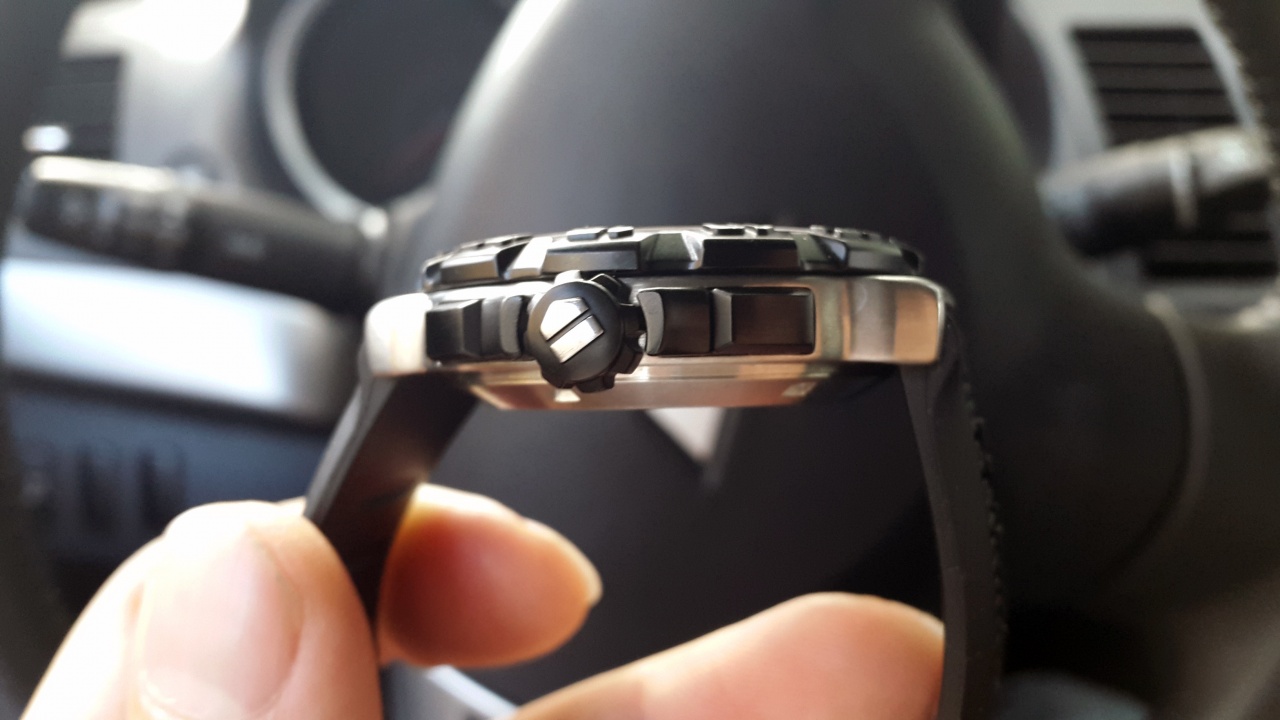 Безель, кнопки и заводная головка покрыты нитридом титана - очень стойким к появлению царапин материалом.