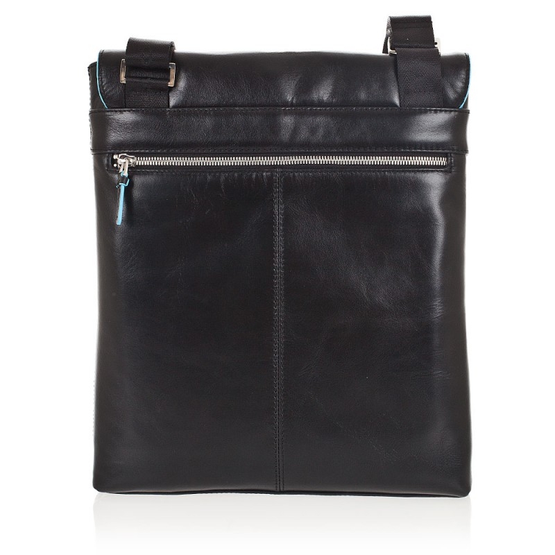 Сумка вертикальная с плечевым ремнем. Оторочка по канту, подкладка-голубым. Регулируемый плечевой ремень. Одно отделение под клапаном, отделение для iPad с фиксацией. Съёмный брелок для ключей. Клапан на магнитной застежке. Алюминиевая пластина с индивидуальным номером выполнена в оригинальном голубом цвете PIQUADRO и придаёт изделию оригинальности.