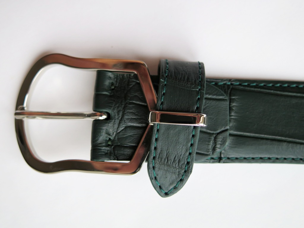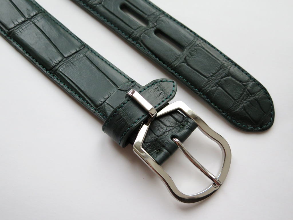 Мужской ремень из крупного аллигатора, цвет British green. Made in Italy