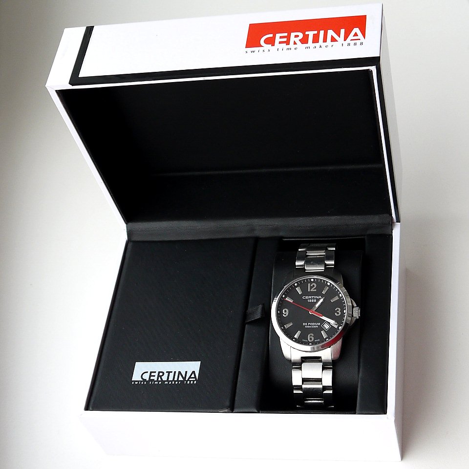 Certina (в большинстве европейских языков произносится «сертин(а)», и только в итальянском - «чертина») - одна из классических швейцарских часовых мануфактур. Была основана в 1988-м, благополучно пережила все революции 20-го века, в том числе «кварцевую». Удалось ей это благодаря разработанной в конце 50-х концепции «двойной надежности» (Double Security - именно это означает аббревиатура DS в названии модели). Концепция представляет собой комплекс мер, которые обеспечивают особую ударопрочность и водостойкость часов: утолщенные сапфировое стекло и задняя крышка, дополнительные уплотнения коронки, заводной оси и задней крышки. Для демонстрации работы DS фирма Certina неоднократно устраивала эффектные демонстрации: вмонтировала свои часы в хоккейную шайбу, сбрасывала с вертолета, спускала по водопаду. И ничего их не брало! Недаром лицом фирмы в свое время был Мохаммед Али, а сейчас эта роль принадлежит Уле-Айнару Бьёрндалену.