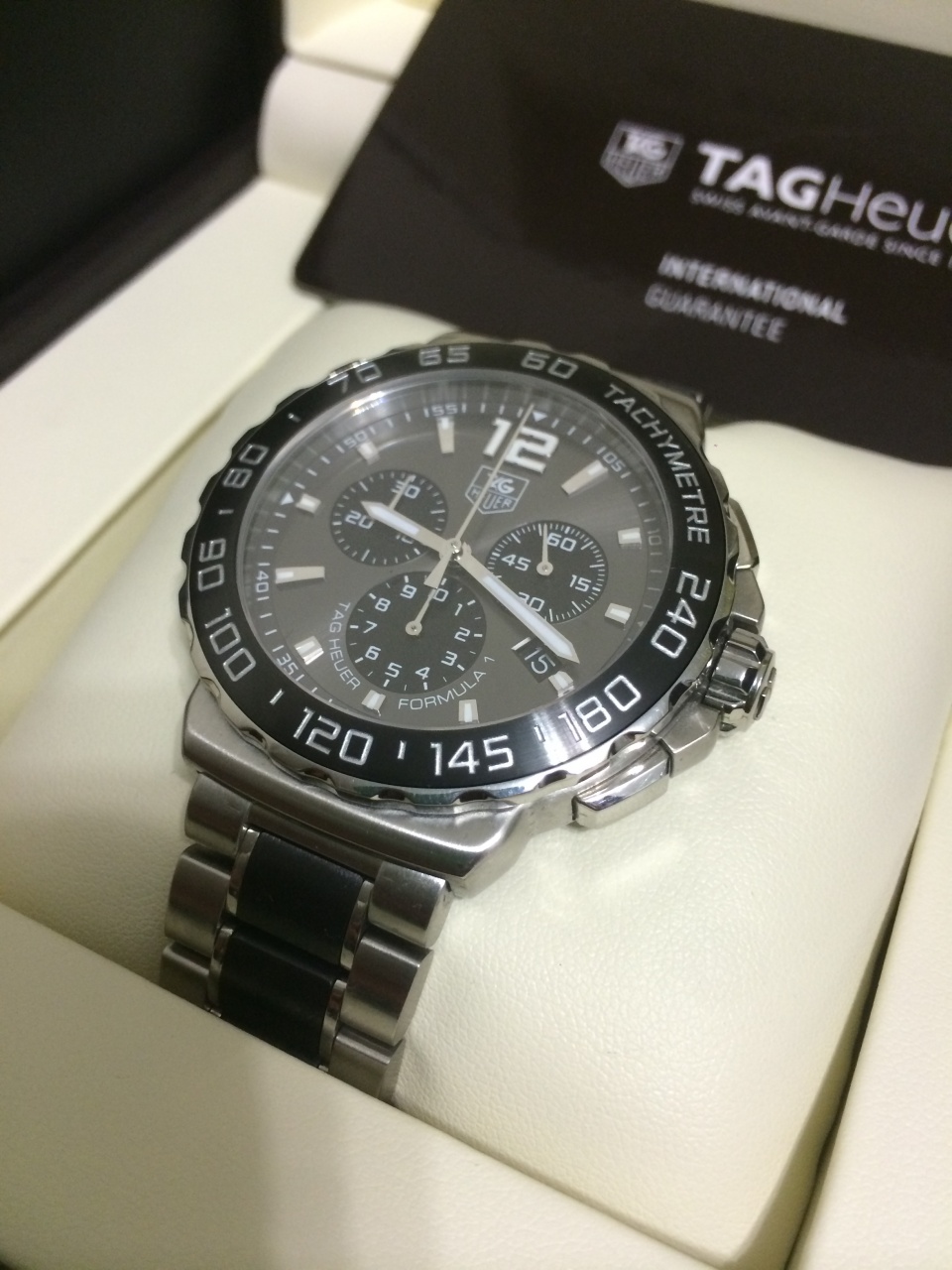 В продаже топовый хронограф Tag Heuer реф. CAU1115.BA0869, являющийся флагманом линейки Formula 1. Состояние часов отличное, близкое к идеальному. Носились очень аккуратно, поэтому, как следствие, вид практически новых часов.