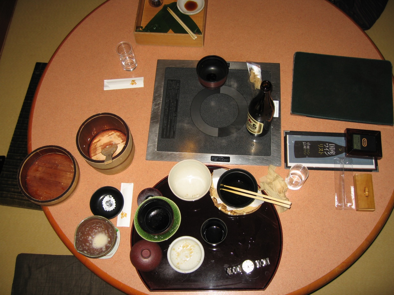 искупавшись в святых водах ( горячих и холодных ) скромно закусили ( магуро ел слабошлифованный рис- постится по синтоистки...)