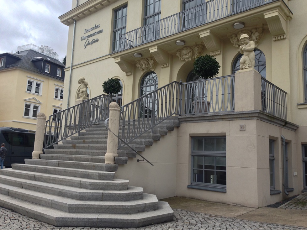Немного теории. Музей официально открыт 22 мая 2008 года, а его финансирование осуществляется фондом “Glashütte German Watch Museum Foundation – Nicolas G. Hayek”. Непосредственными участниками фонда являются город Гласхютте и ГО (они же и владеют львиной долей экспонатов музея, хотя справедливости ради стоит отметить, что посетителям доступны и экспонаты из частных коллекций).