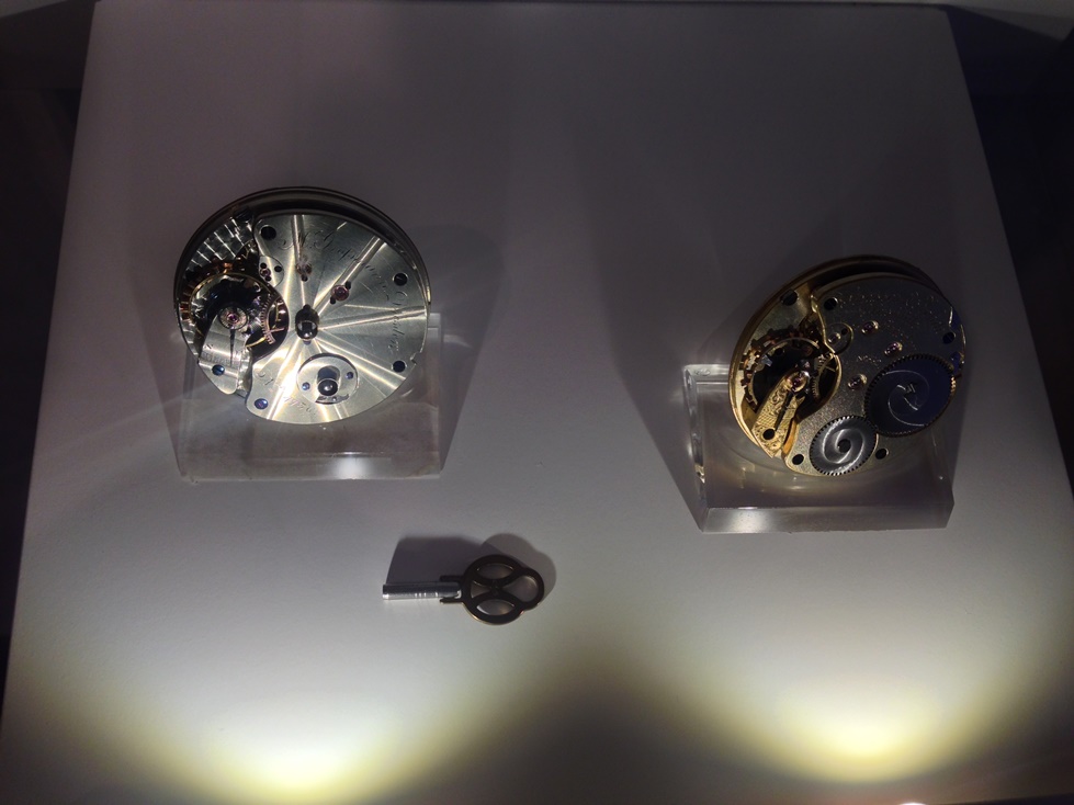 Тут можно увидеть единственную витрину, в которую помещены как сами часы, так и отдельные компоненты