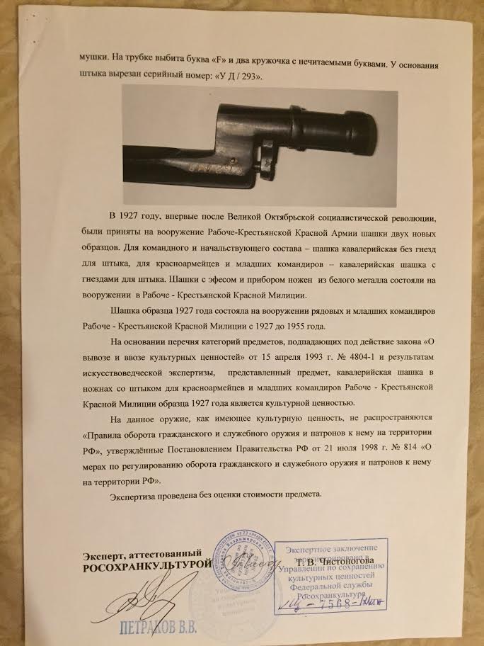 Экспертное заключение ГИМ. Гарантированный оригинал.