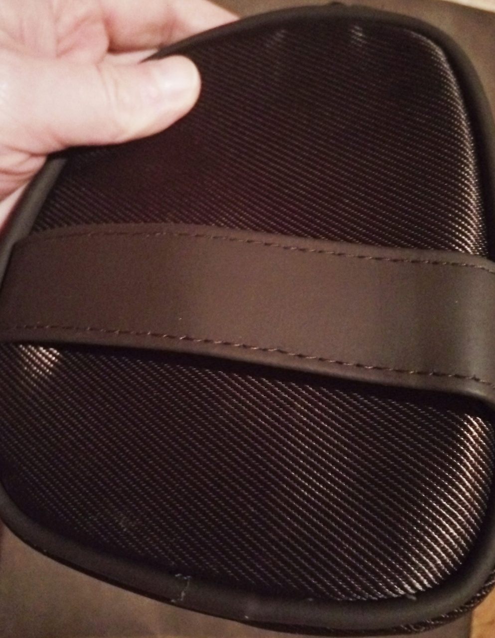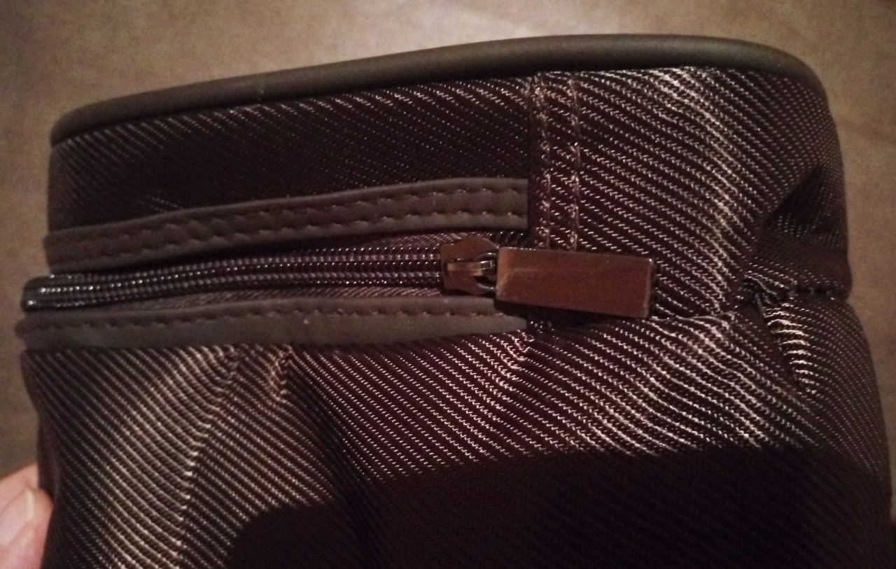 Оригинал, вшитые ярлыки. Представляет из себя косметичку из плотной ткани, коричневого цвета. По центру сумки металлическая планка с логотипом (планка в заводской пленке), на торце есть ручка, сумка закрывается на замок, также имеет удобный боковой карман для мелочевки на молнии.