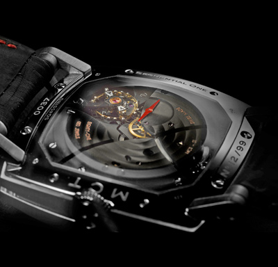 Механизм MCT с ручным заводом, видимый через сапфировое стекло на задней крышке корпуса, также имеет черное DLC-покрытие. Калибр состоит из 471 деталей, на 81 камне, с частотой 18000 полуколебаний в час, имеет запатентованную систему для 90-градусного мгновенного поворота диска минут и запас хода 40 часов. Секундная стрелка находится на задней стороне механизма и имеет чисто техническую функцию синхронизации при выставлении точного времени.