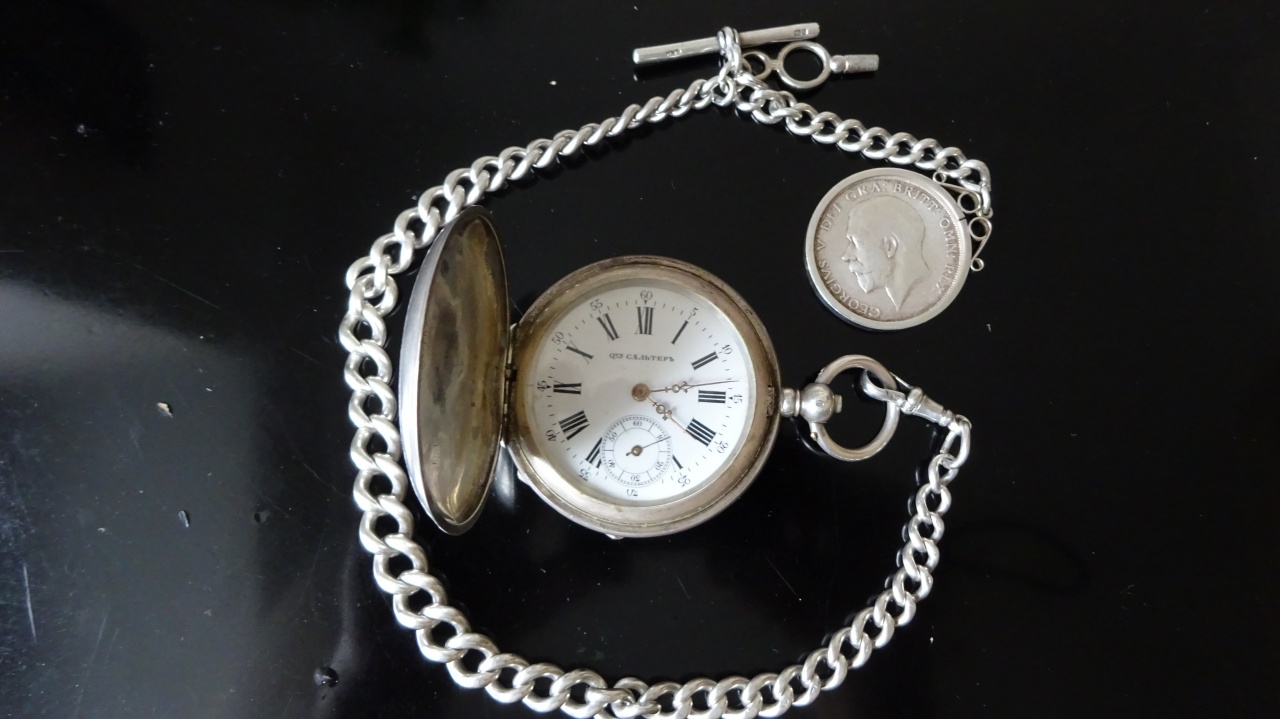 Прошу оценить карманные серебряные часы Qte Сальтеръ с цепочкой