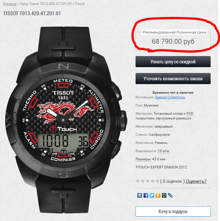 TISSOT T-Touch Expert T0134204720101 Year of Dragon SPECIAL EDITION. Черный цифер / d=43mm - Часовой форум Watch.ru