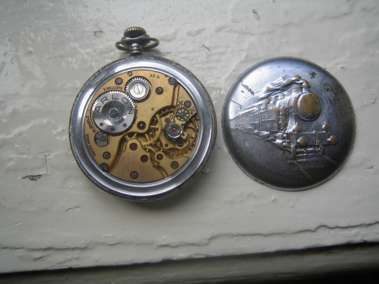 Карманные часы Arlon с изображением паровоза на крышке