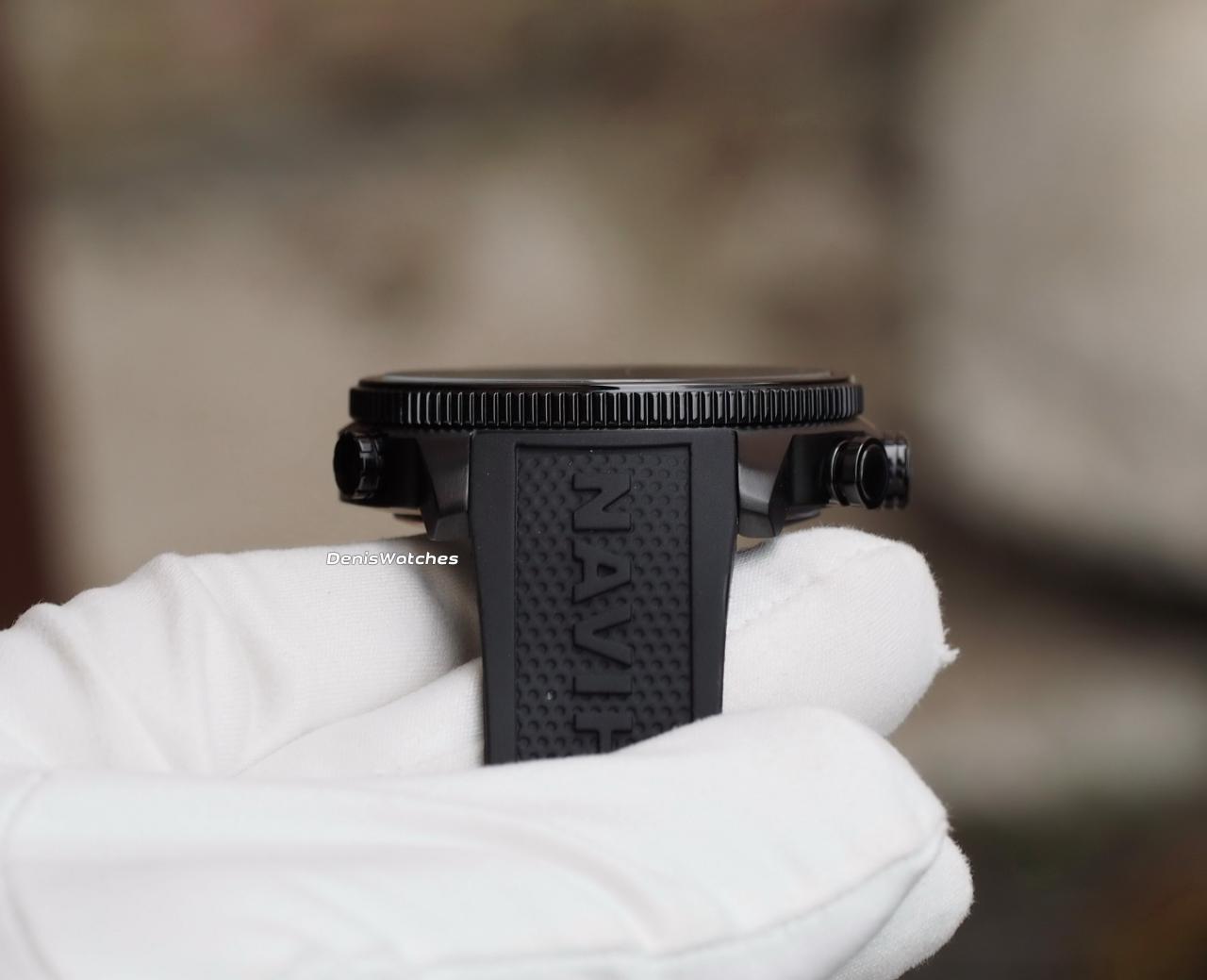 Стальной корпус, сатинированный, полностью в стойком черном ионном покрытии, на боку табличка с названием серии - Navihawk