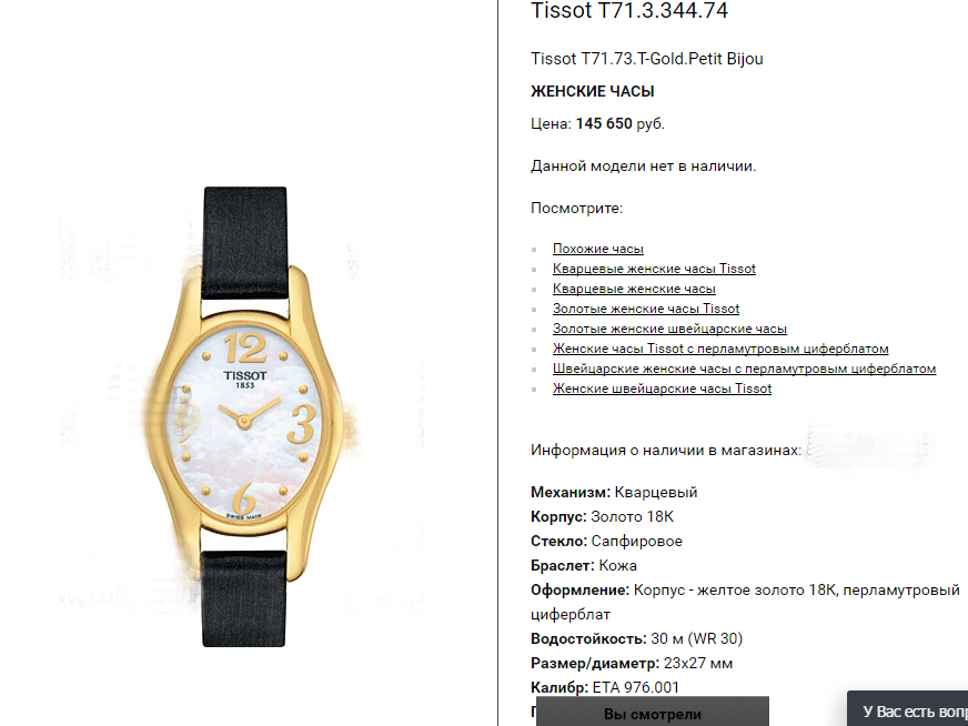 Фото часов в хорошем качестве: Tissot Petit Bijou - T71334474 - T71.3.344.74