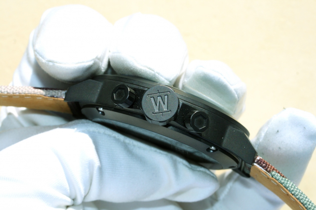 - заводная головка и кнопки управления хронографом находятся слева и не мешают запястью