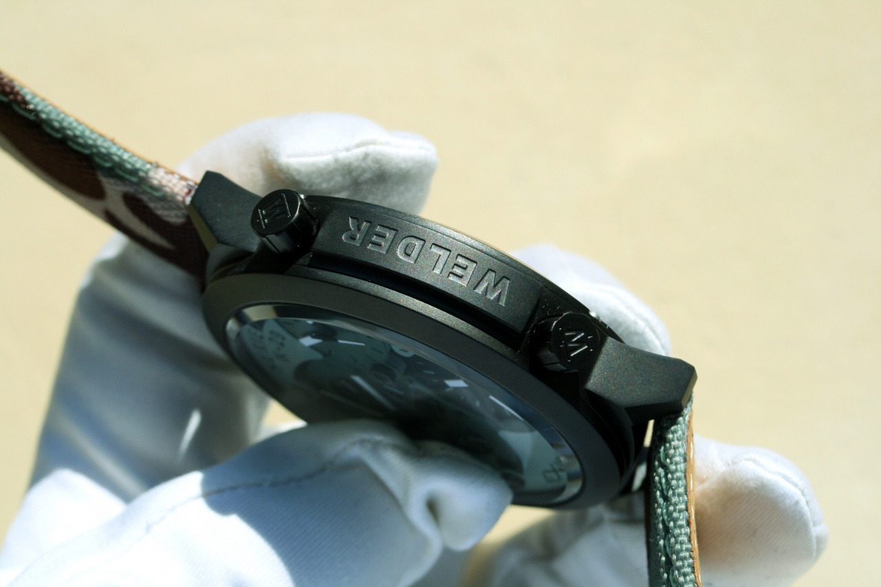 [брутальный хронограф] WELDER K29-8004** черный PVD корпус ** 3 часовых пояса ** камуфляжный ремешок