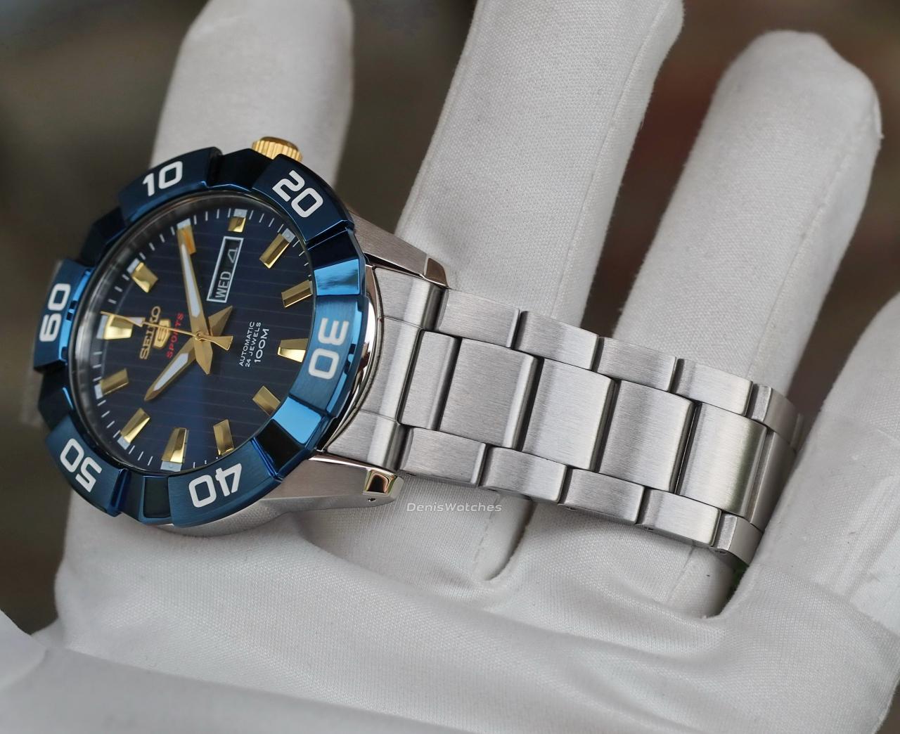 Синий циферблат, красивый глубокий цвет, накладные метки, лого Seiko и 5