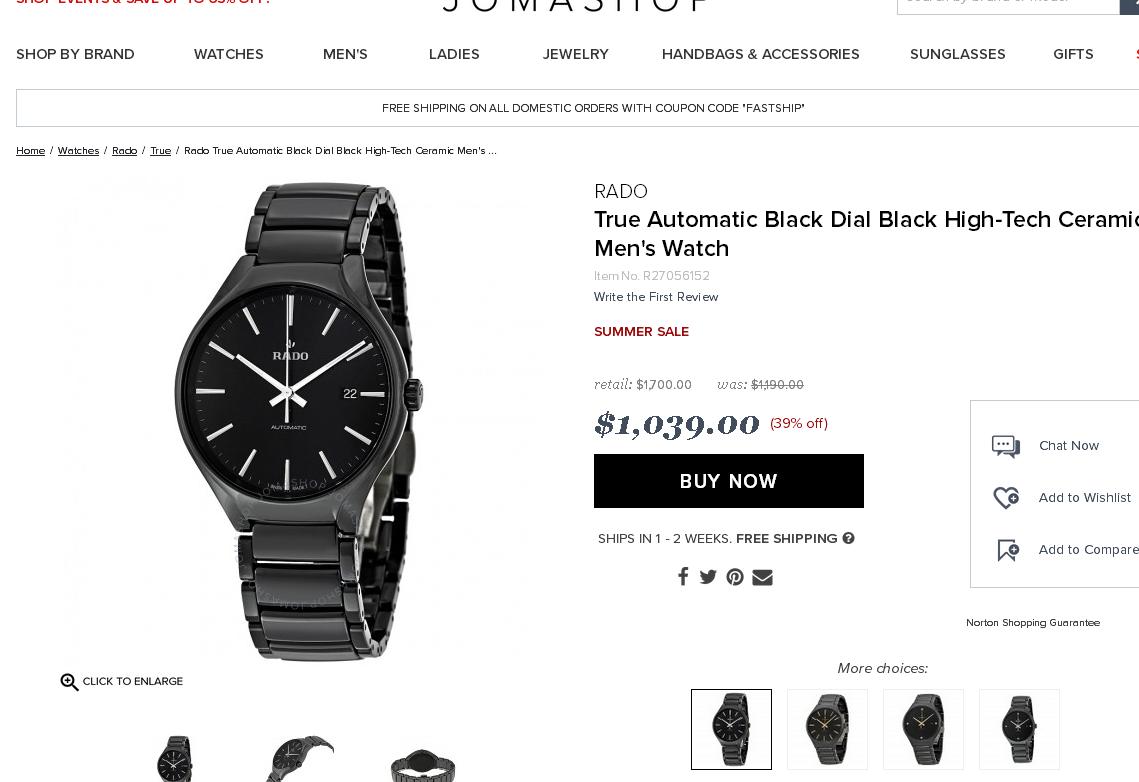 1 июля я захожу на их сайт, вижу Rado True по цене 1039$, всемогущий гугл еще выдал промокод на скидку в 50$. Доставка указана 1-2 недели (на скриншоте видно). Ну думаю надо брать.
