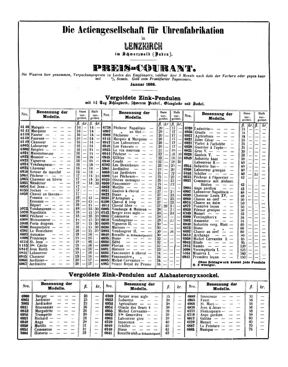 Прейскуранты Lenzkirch за 1868 и 1869 годы