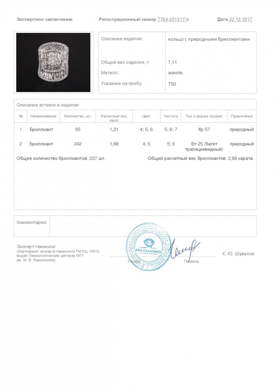 Прелестное золотое кольцо с бриллиантами 2.88ct