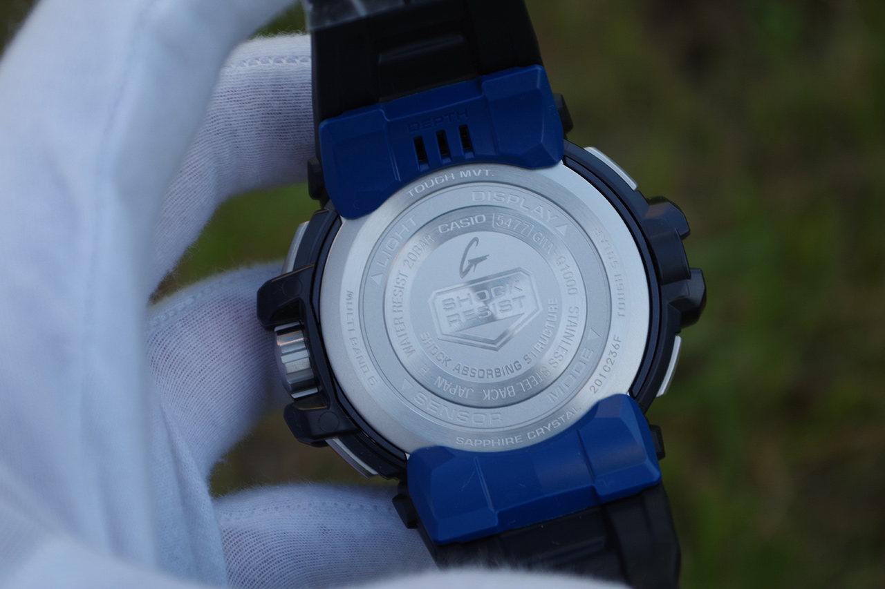 Gulfmaster. Питание от солнечной энергии Tough Solar - солнечные батарейки большой мощности, индикатор заряда батареи. Функция автоматического сохранения энергии. Время работы аккумулятора без подзарядки до 6 месяцев, при включенной функции сохранения энергии до 21 месяца. Противоударный корпус защищает механизм от ударов и вибрации. Циферблат и ЖК дисплей подсвечиваются ярким светодиодом, при недостаточном освещении во время поворота запястья в сторону лица подсветка включается автоматически. Светонакопительное покрытие Neobrite продолжает светиться в темноте даже после непродолжительного пребывания на свету. Технология Multi Band 6 позволяет принимать сигналы от шести радио вышек, расположенных в различных точках земного шара, которые передают временные сигналы от определенных атомных часов. Коррекция текущего времени радиосигналом на территории почти всей Европы, США, Японии и Китая. Функция автоматической коррекции положения стрелок проверяет положение стрелок каждый час и корректирует его в случае необходимости. Технология Quad Sensor позволяет точно и легко определять сторону света, температуру, атмосферное давление/высоту и глубину. Встроенный цифровой компас. Диапазон измерения от 0° до 359° с точностью 1°. Коррекция магнитного склонения. Встроенный датчик температуры от -10° до +60°С с точностью 0,1°C. Барометр - измерение атмосферного давления от 260 до 1100 гПа (от 195 до 825 мм рт. ст.). Высотомер - встроенный датчик барометрического давления с возможностью вывода результатов в единицах высоты над уровнем моря (от -700 до 10000 метров). Глубиномер до -50м, точностью 10см. Автоматический запуск и остановка измерений на глубине 1м. Журнал аквалангиста до 40 записей времени начала погружения, длительности погружения и температуры воды. Система Smart Access с помощью электронной заводной головки обеспечивает простой и удобный доступ ко всем важным функциям часов. Нажатие или поворот заводной головки позволяет переключаться между различными режимами и активировать будильник, таймер, секундомер, а также настраивать функцию мирового времени. Отображение возраста и фазы Луны. Графическое отображение сведений о приливах и отливах на заданную дату и время. Мировое время – 48 городов (31 часовой пояс), всемирное координированное время (UTC). Автоматический переход на зимнее и летнее время, возможность включения/отключения данной функции. Время восхода и захода Солнца. 12-ти и 24-х часовой формат времени. Секундомер с точностью показаний 1/100с и временем измерения 24ч. Сплит-хронограф. Таймер обратного отсчета от 1мин до 1ч. Функция включения/отключения звука. Стальной безель с IP покрытием. Завинчивающаяся заводная головка с защитой.