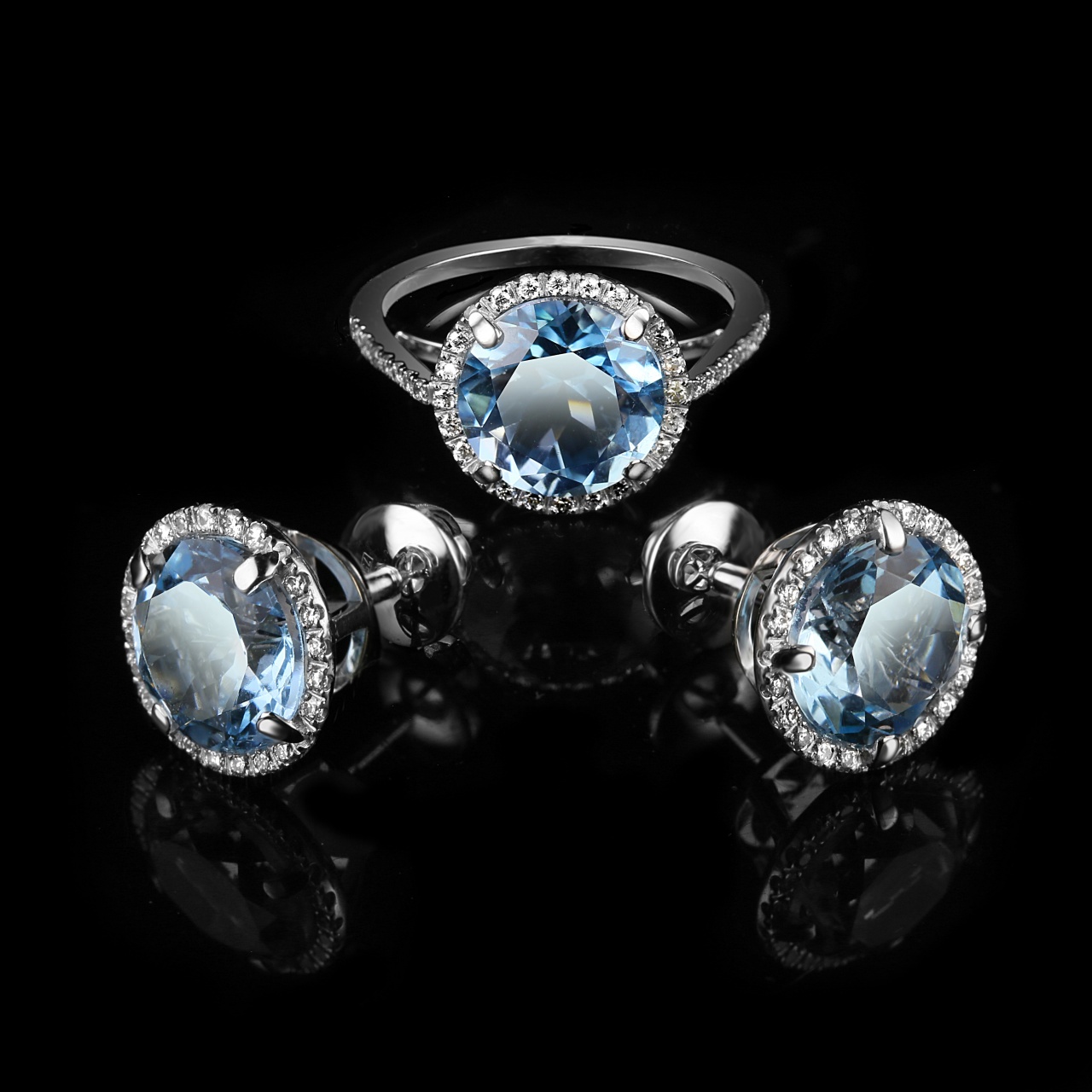 Кольцо и серьги из белого золота с топазами 9 карат и бриллиантами 0,35 карат (сертификат МГЦ) - Часовой форум Watch.ru