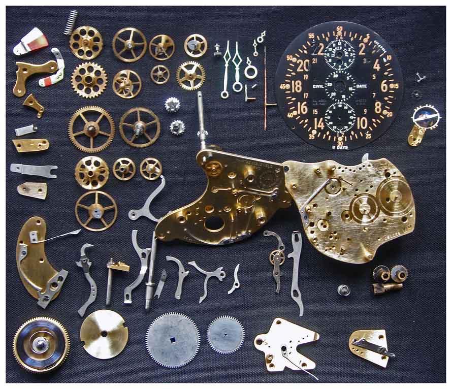 Механизм, визуально - в идеальном состоянии - все шестерни целы, баланс цел - вращается... Заводить часы пока не пробовал - фонят: в сантиметре от циферблата - 0,64 мкЗв/час, в полуметре фон нормальный.