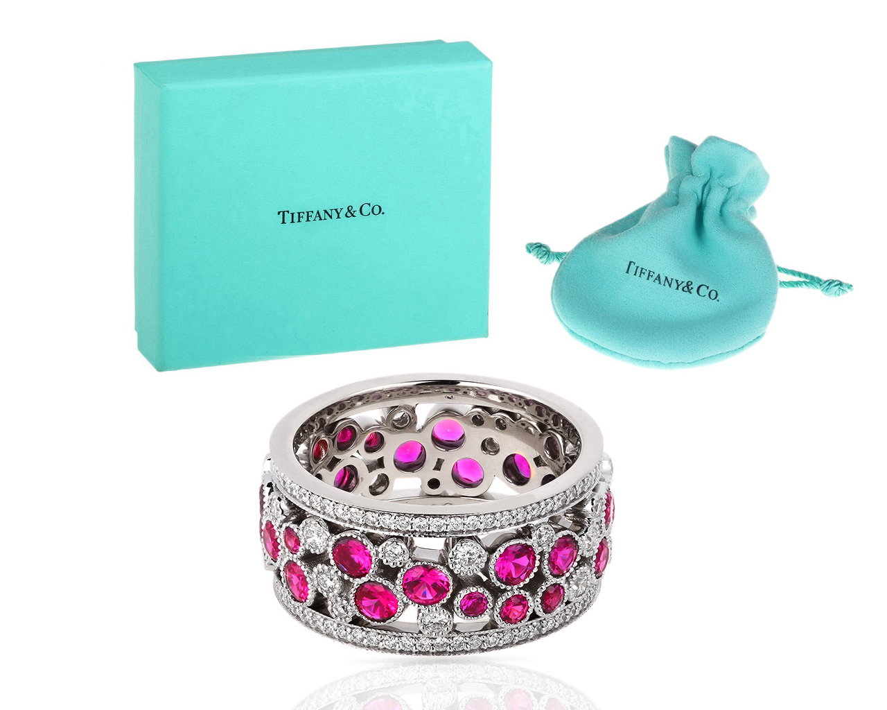 Платиновое кольцо с бриллиантами и рубинами Tiffany&Co