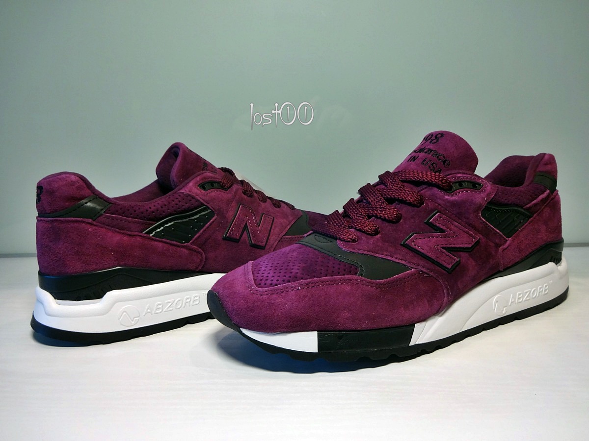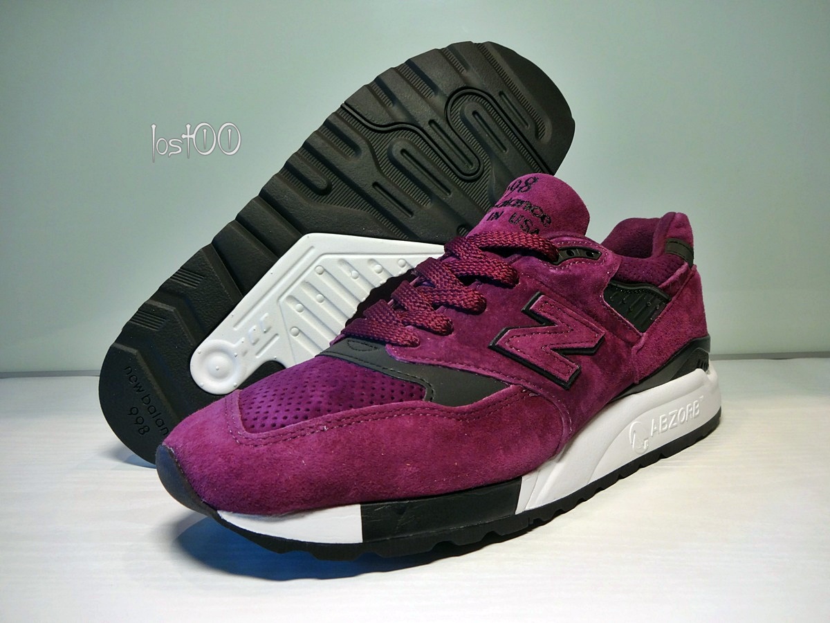 Основной цвет - пурпурный, разбавляется черными акцентами и белой подошвой.