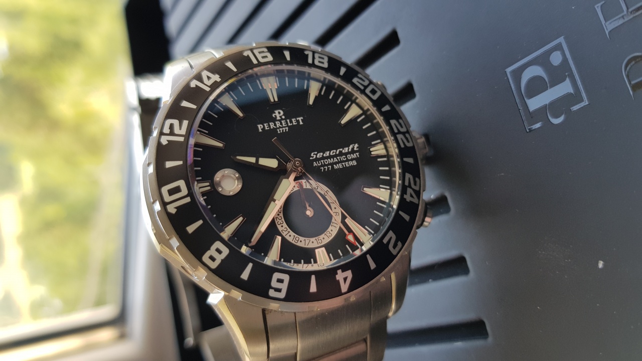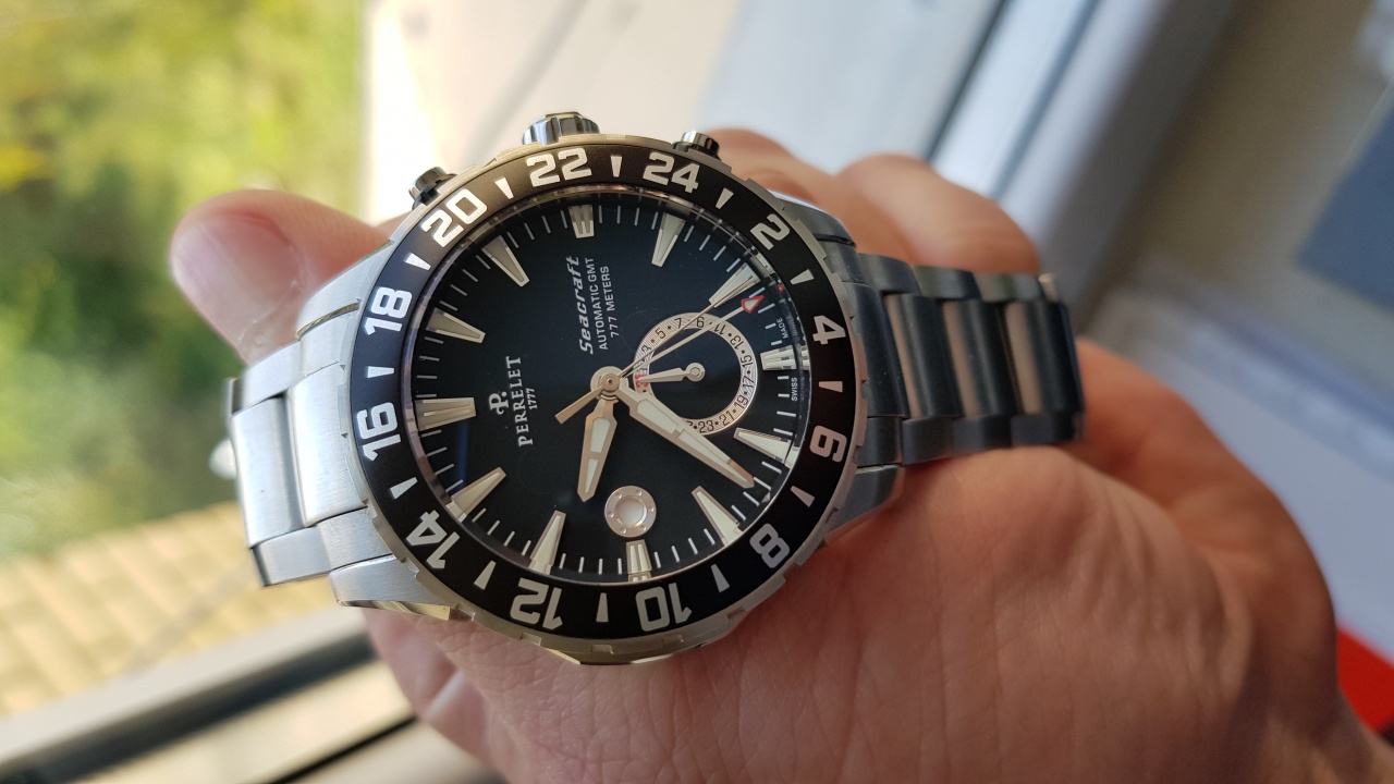 Часы куплены новыми, полтора года назад в известном американском интернет магазине. Носились мало и бережно. Воды не видели, несмотря на водозащиту 777 метров. Состояние отличное, без царапин и коцок. Усложнения - дата, второй часовой пояс, день-ночь. В комплекте коробка, большая шкатулка, нейлоновый оригинальный ремень (абсолютно новый, даже не распакованный). Полировки и тем более репассажа не требуют.