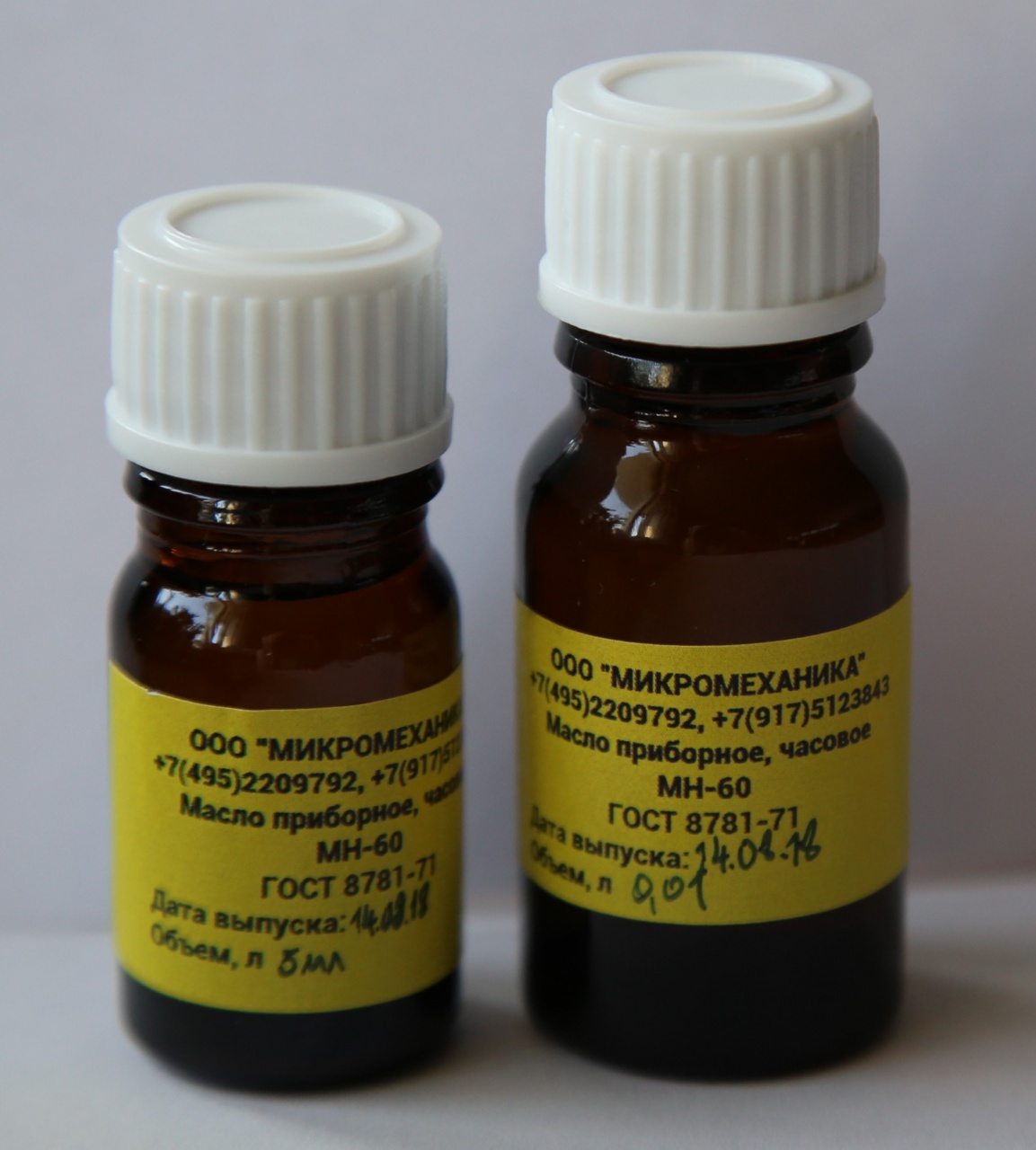 МН-60 Масло часовое полусинтетическое низкотемпературное основного применения, вязкость 30-38 сСт, температура -60 +50 С.