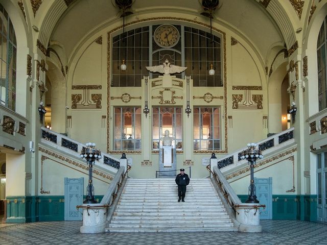 Часы в восстанавливаемом ресторане Витебского вокзала Петербурга