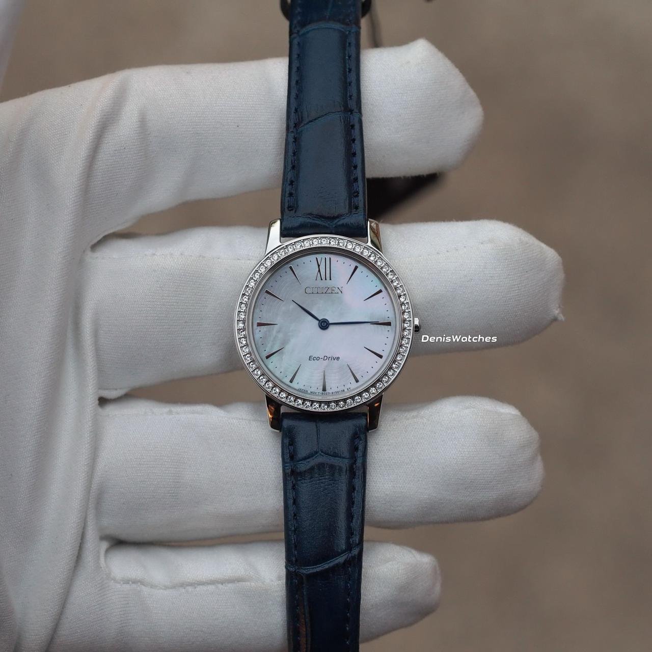 Элегантные женские часы с перламутровым циферблатом и кристаллами Swarovski на безеле