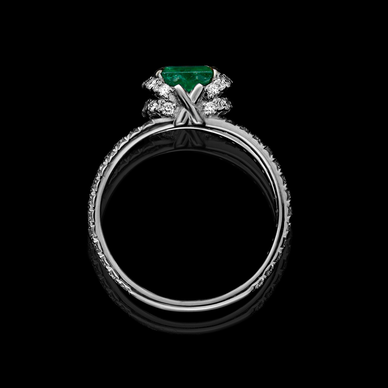 Кольцо из белого золота с изумрудом 1,23 карат и бриллиантами 0,6 карат (сертификат МГЦ)