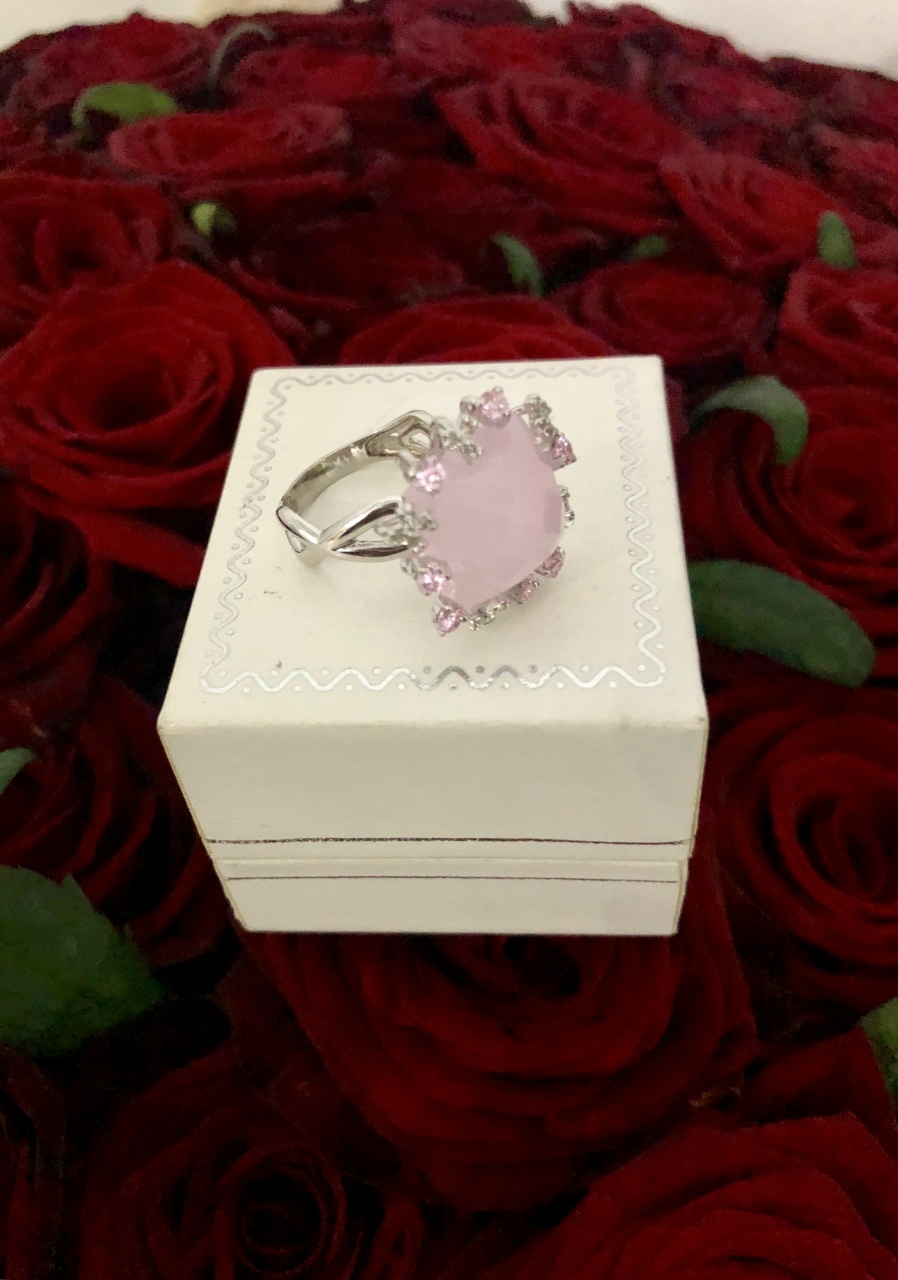 НОВОЕ КОЛЬЦО С РОЗОВЫМ КВАРЦЕМ И БРИЛЛИАНТАМИ, ТОРГ/ОТПРАВКА