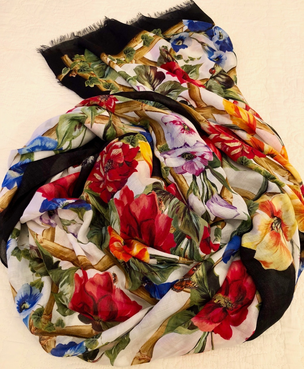Палантин Dolce & Gabbana. Теплый, КАШЕМИР С ВИСКОЗОЙ Расцветка: яркие цветы и черный кант - Часовой форум Watch.ru