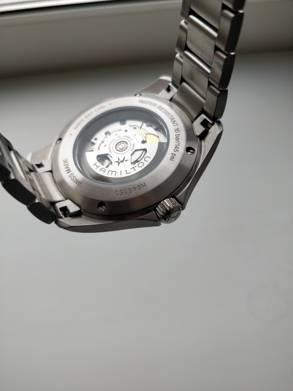 Часы куплены три месяца назад у официального дилера и имеют два года международной гарантии. Часы бережно носились по выходным. Следов эксплуатации не имеют. Зато имеют точный ход: плюс 1-2 секунды в сутки. Браслет отрегулирован на запястье 16 см. Дополнительные звенья в комплекте. Продаются, пока в продаже интересующие меня часы.