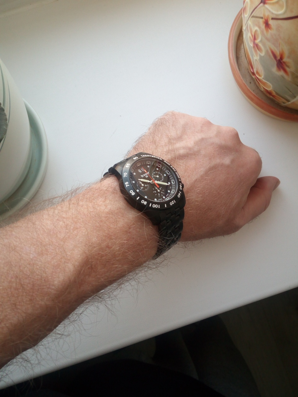Браслет: на 22 мм, стальной c PVD покрытием, сейчас на руку примерно 18см, два снятых звена в наличии, полный браслет на руку примерно 20,5 см