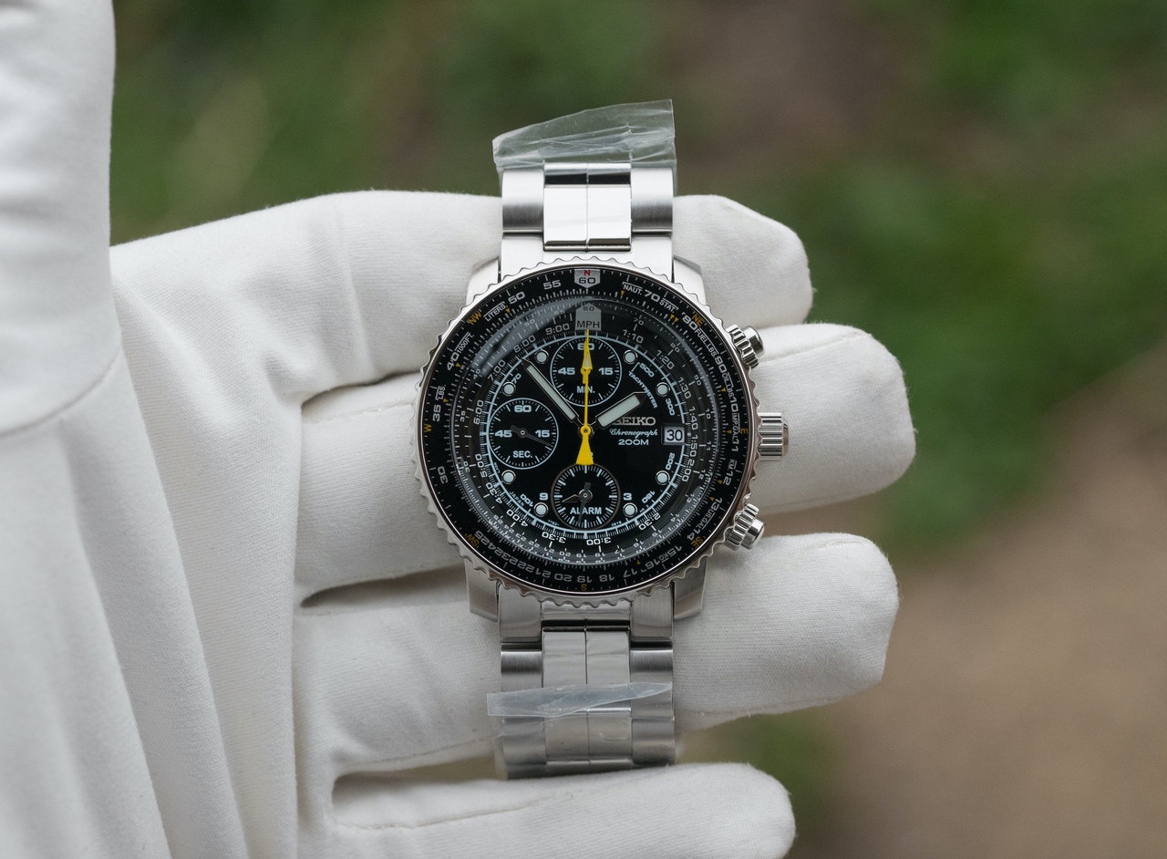 Черный глянцевый циферблат, накладные метки и лого Seiko