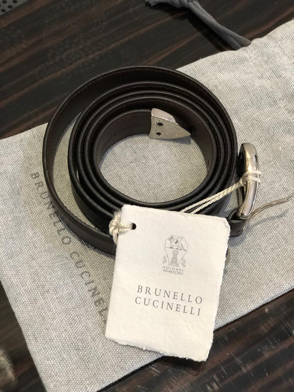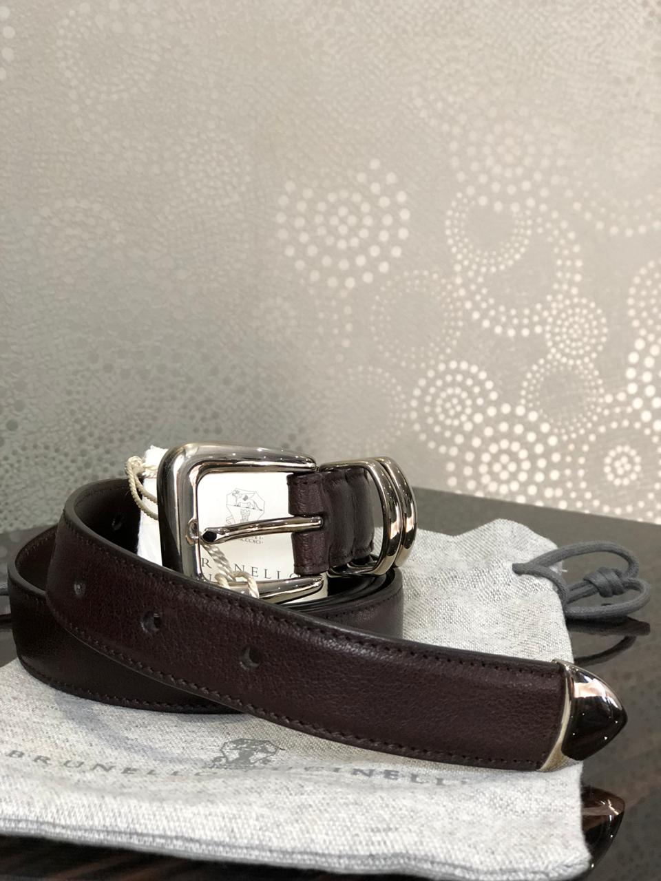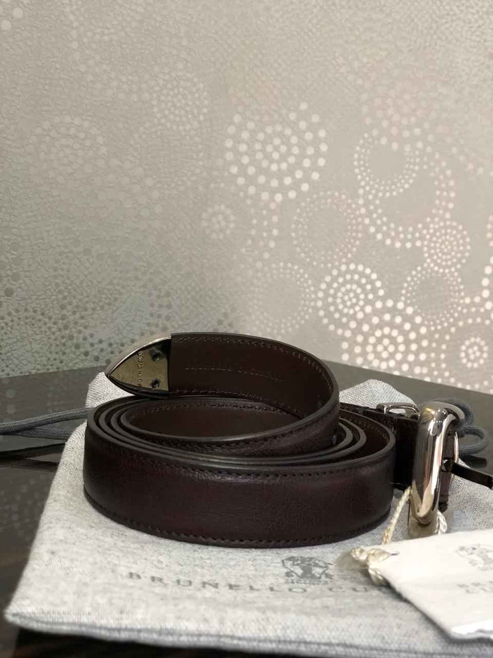 BRUNELLO CUCINELLI новый мужской ремень из телячьей кожи /двойная шлёвка и наконечник/