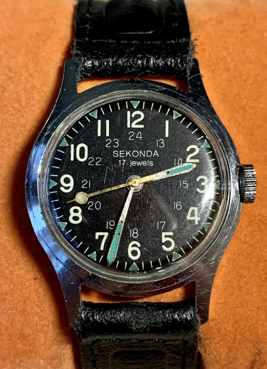 Покопавшись в интернете, я с удивлением обнаружил, что все три Sekonda и примкнувший к ним Полет очень похожи на часы для армии США, а точнее, на часы Benrus DTU-2A/P, выпускавшиеся по спецификации MIL-W 3818B. Судите сами: