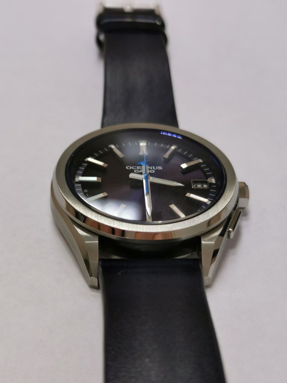 Модель весом 133 гр (на браслете, на ремне еще легче, как перышко), на солнечной батарее, с датой и вечным календарем, плоский сапфир, радио- и bluetooth-синхронизация