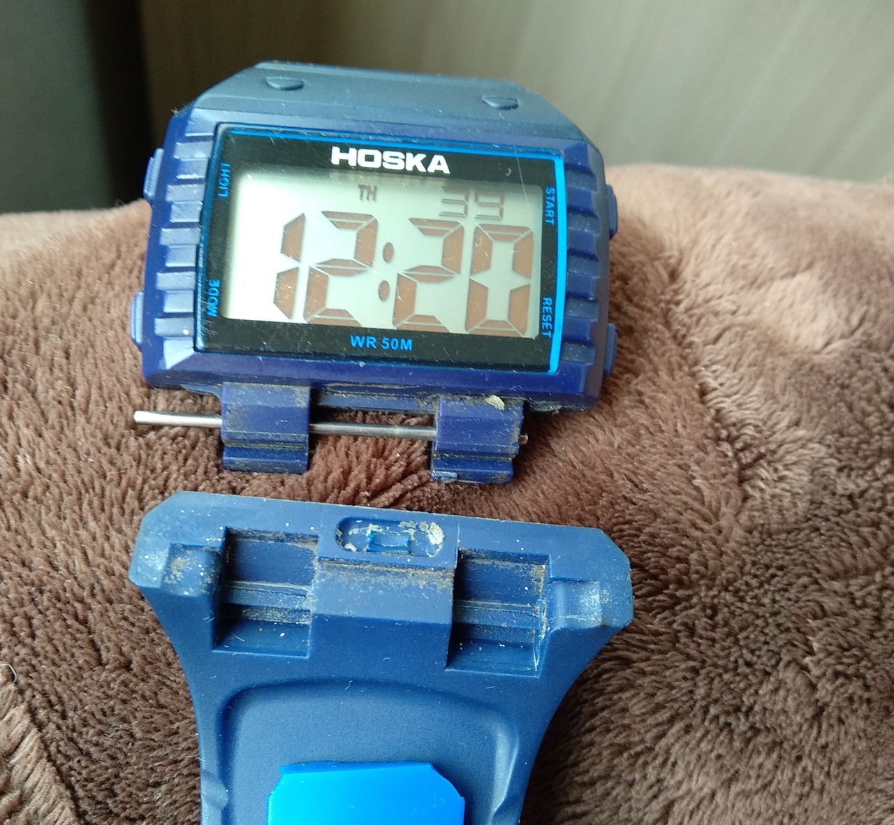 Сами часы изготовлены из пластика, кнопки, ремешок тоже пластиковые. Корпус часов в ширину 49мм(без кнопок), 52 мм с кнопками, 55 мм по диагонали, 44 мм от шпильки до шпильки. Ремешок в широком месте 41мм, в узком 22 мм. Бакля штампованная жестянка.