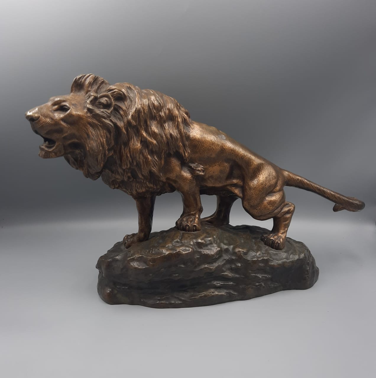 Антикварная скульптура "Лев". Франция, 19 век. Бронза.