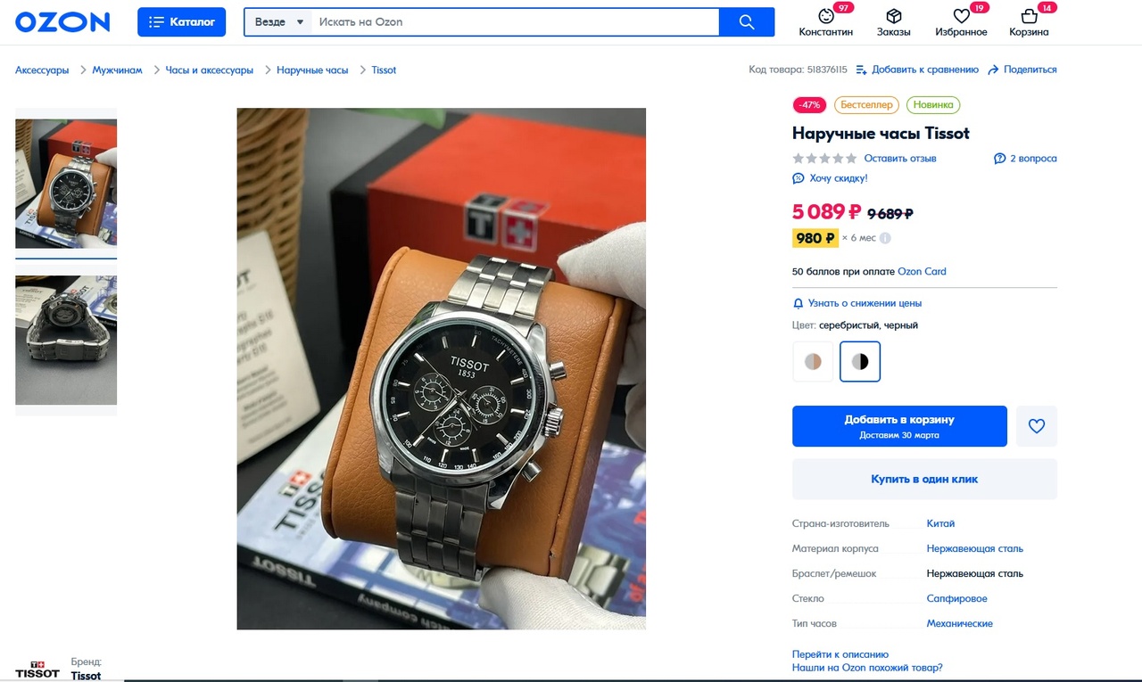 | Покупка часов на Ozon | Maxim Ulin | Отзывы о часовых магазинах, бутиках, ломбардах | 8 | 13.09.2023 22:06 |
