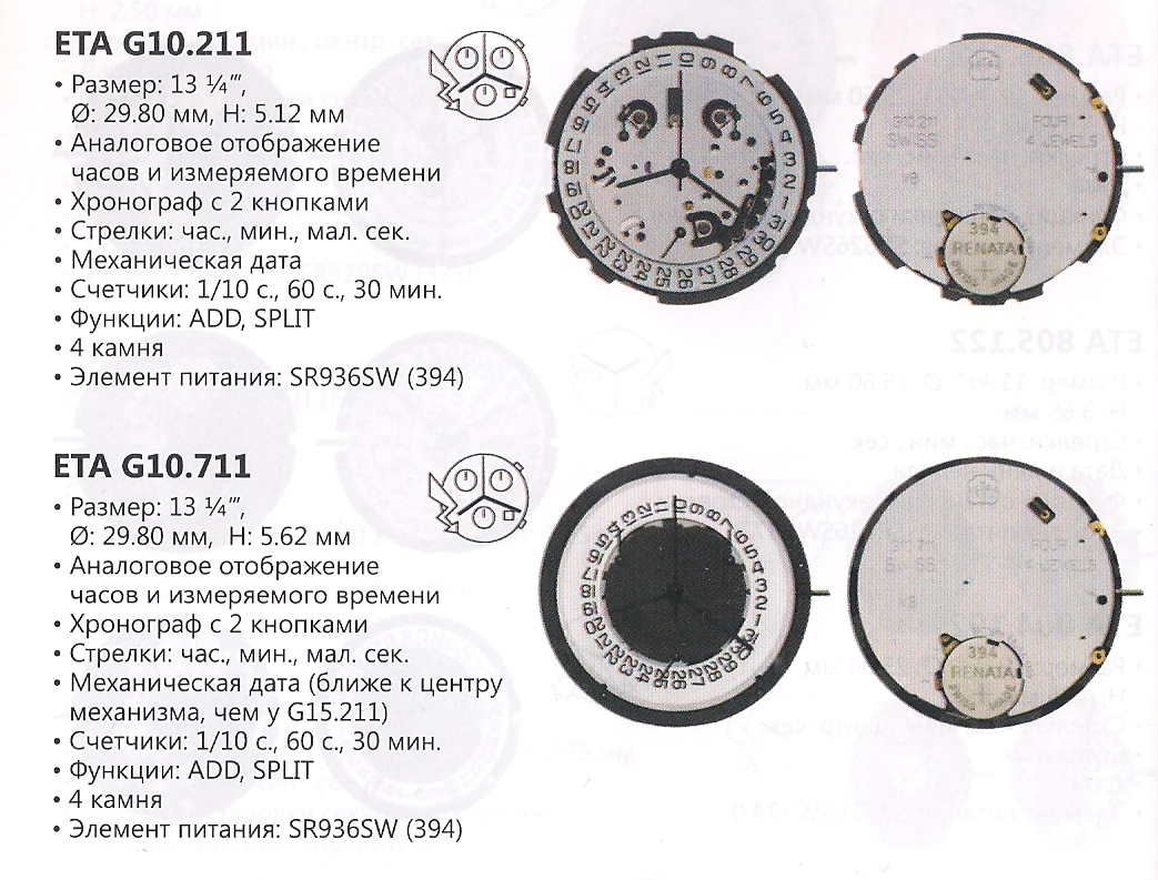 имеются часы с механизмом Eta G10.711. Поскольку нигде не могу найти такой (в том числе не нашел и G10.712), задумался над тем, можно ли заменить его на G10.212. Понимаю, что какие-то счетчики могут не совпасть по смыслу, и надо обращать внимание на расположение даты, но в принципе, можно ли заменить один на другой в данных часах? насколько я понимаю, g10.212 несколько тоньше, чем G10.711, при одинаковой ширине. Так вот, если установить на место сломанного G10.711 механизм G10.212, то встанет ли он? Будет ли соответствовать расположению заводной головки, кнопок хронографа, будут ли соответствовать трибы для стрелок (или как они называются) прорезям в циферблате, и т.п.?