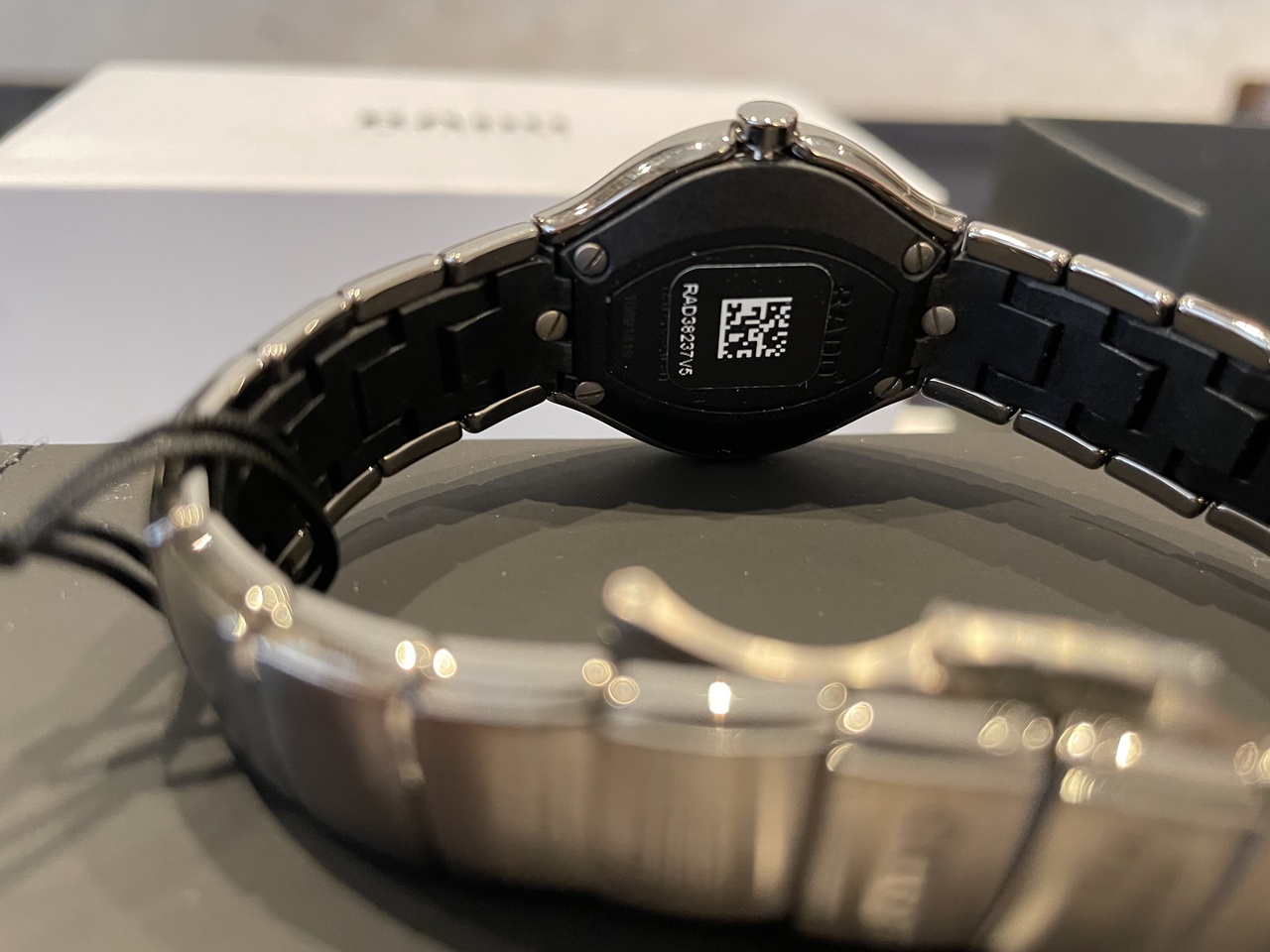 Корпус и браслет выполнены из брашированной высокотехнологичной плазменной керамики, водостойкость: 30 м (WR 30). Размер/диаметр корпуса - 27 мм, толщина: 8 мм. Срок службы батарейки: июнь 2024 года. Производство: Швейцария.