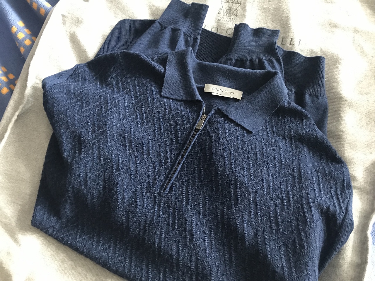 рубашка-поло с длинными рукавами и молнией из очень тонкой мериносовой шерсти тройного кручения