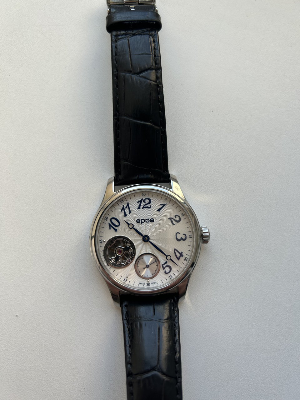 В продаже редкие часы для души от именитого производителя. Отличный вариант любителям ретро и ручного завода, либо тем, кто пока финансово не готов к Stowa, Nomos, Glashutte, Longines, Tourby и к прочим моделям из линеек Heritage, marine и military от именитых производителей... Я не первый хозяин в РФ. Покупал в таком же состоянии по случаю. Иногда использовал как часы "для души" / часы выходного дня. Под капотом - самый надежный и уважаемый ценителями механизм с ручным заводом- Unitas 6498. Цифер очень красивый- серебристого цвета с гильоше и синими цифрами (фото не передает до конца, к сожалению). Декор механизмов у моделей Epos выше всяких похвал - любоваться одно удовольствие. Тикают громко и душевно