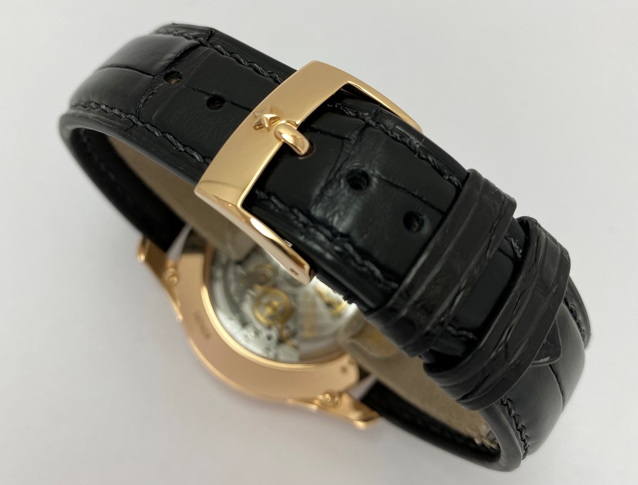 -Ремешок из аллигатора с классической пряжкой из розового золота.