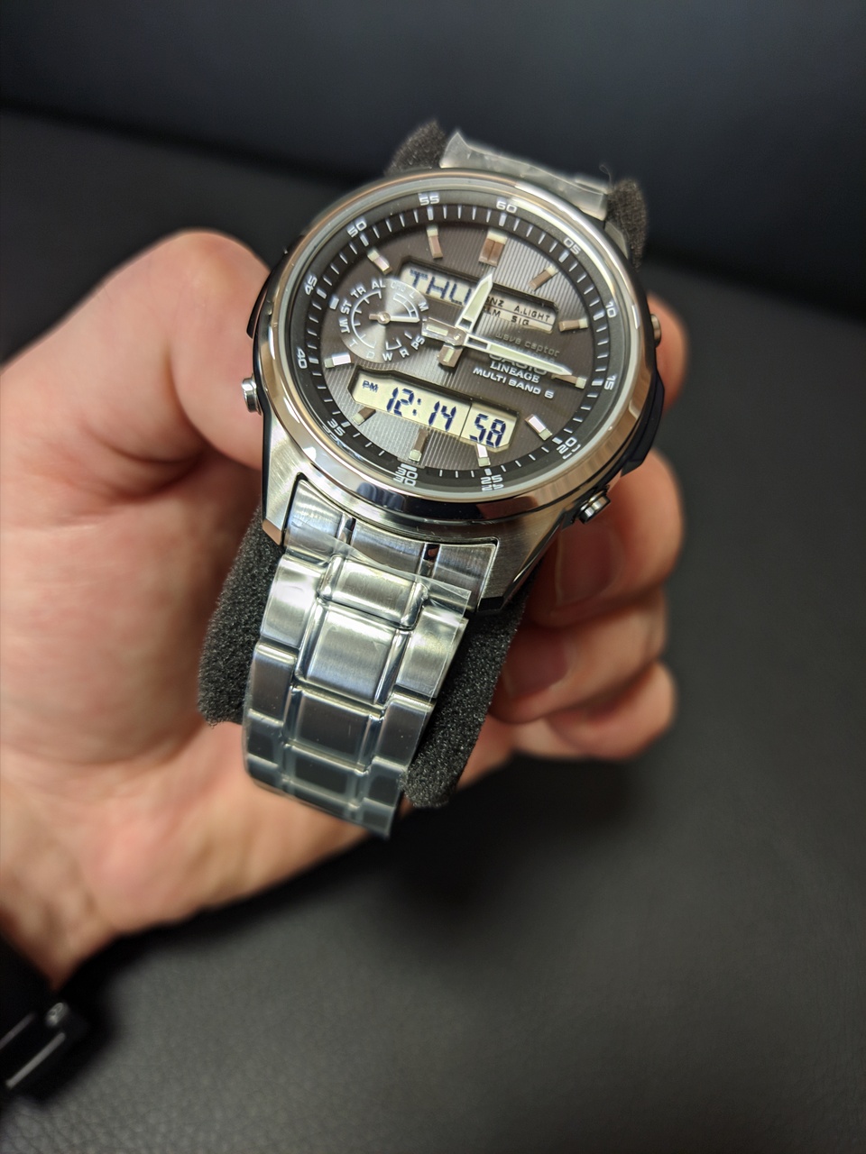 Часы изготовлены полностью из нержавеющей стали, классический японский дизайн, объемный, очень красивый и информативный циферблат с двойной индикацией (цифровая и стрелочная), прекрасная читаемость всех показаний, широчайший функционал, и высокое качество Casio!